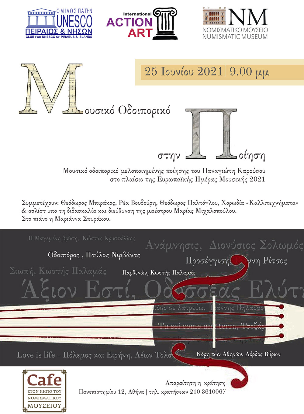 Παρασκευή 25 Ιουνίου 2021 στις 9 μ.μ. στο Café στον κήπο του Νομισματικού Μουσείου Αθηνών.