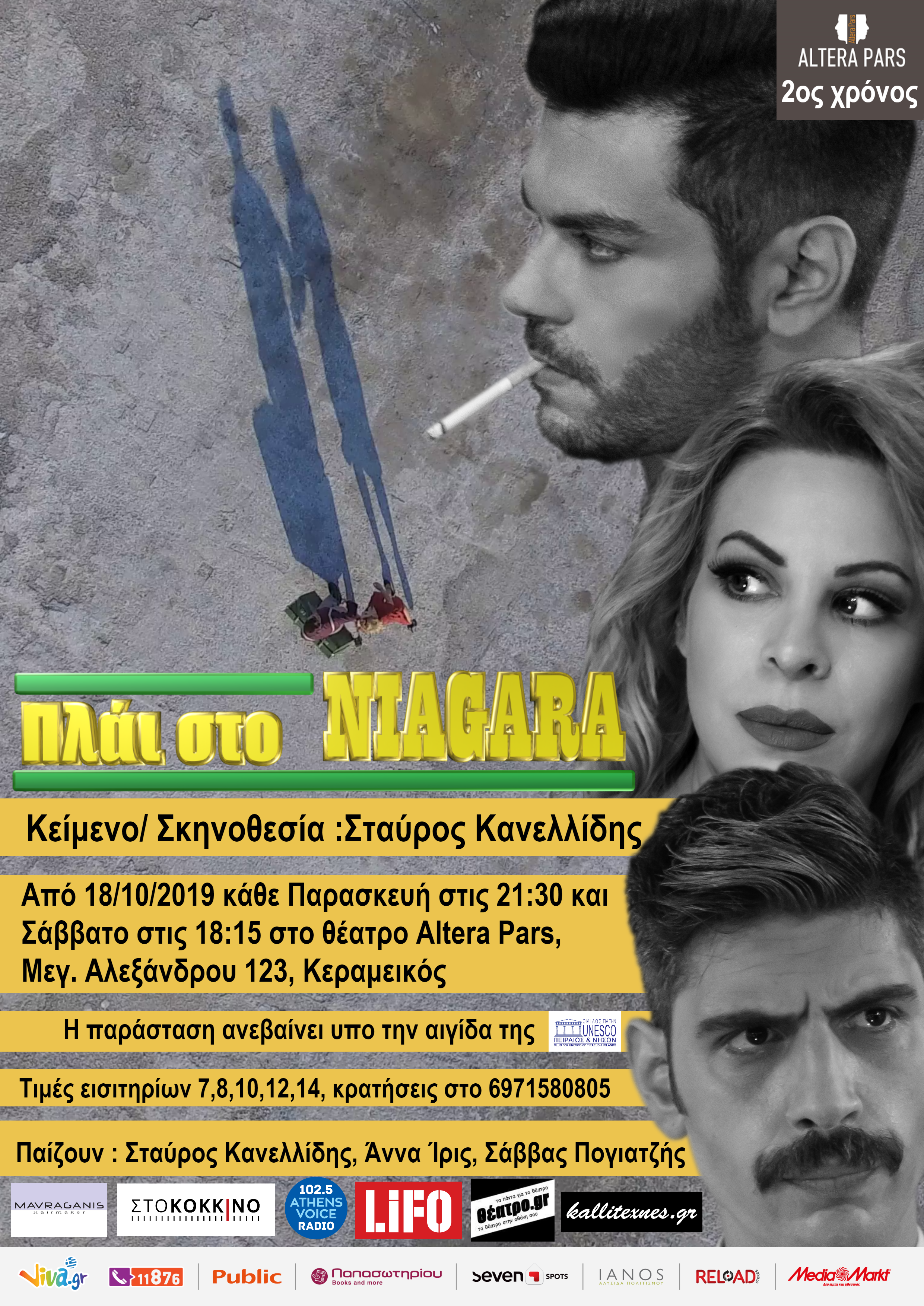 Τα πράγματα περιπλέκονται ακόμα πιο πολύ όταν έρχονται σε επαφή με τον Άνταμ, τον ιδιοκτήτη του ξενοδοχείου που διαμένουν. Τίποτα και κανείς δεν είναι όπως φαίνεται. Οι τρεις χαρακτήρες γρίφοι, επιδίδονται ένα παράξενο παιχνίδι εκδίκησης που γίνεται όλο και πιο ενδιαφέρον καθώς ξετυλίγεται η δράση στη σκηνή του θεάτρου Altera Pars. Ο Σταύρος Κανελλίδης εκτός από τη συγγραφή του έργου υπογράφει τη σκηνοθεσία και πρωταγωνιστεί μαζί με την Άννα Ίρις και τον Σάββα Πογιατζή. Ο στόχος του είναι να οδηγήσει το θεατή σε ένα γοητευτικό ταξίδι με ατμόσφαιρα σαν αυτή που συναντάμε στα φιλμ νουάρ. Άλλωστε το έργο είναι εμπνευσμένο από το story του σεναρίου των Richard L. Breen και Walter Reisch της ταινίας του 1953 «Νιαγάρας».Παρ όλα αυτά δε πρόκειται για διασκευή αλλά για ένα νέο ελληνικό θεατρικό έργο.