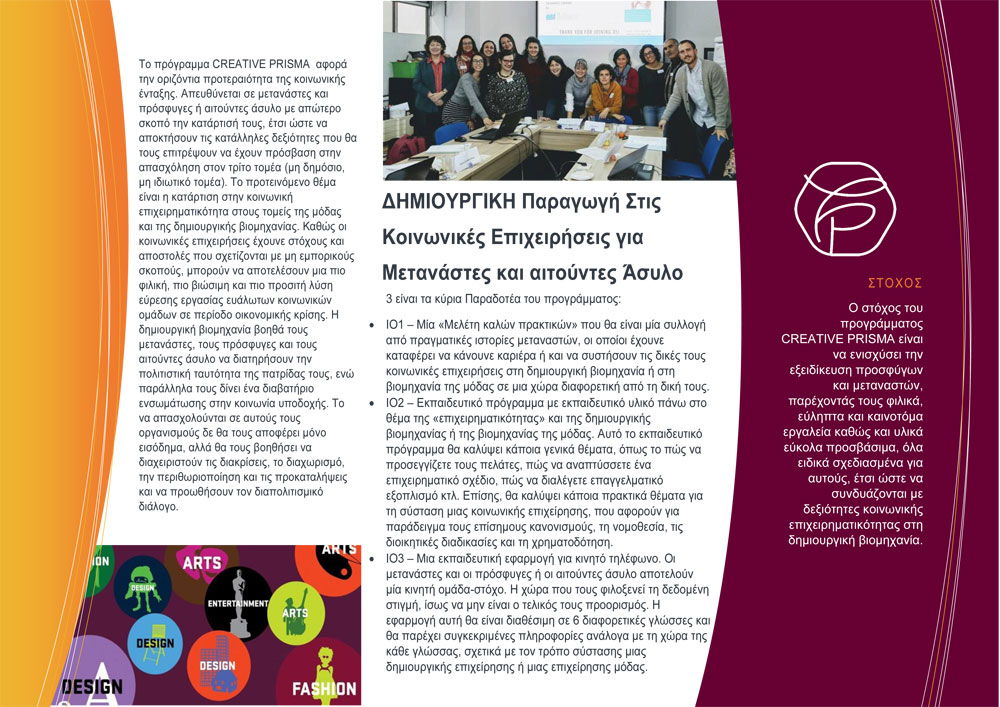 ΔΗΜΙΟΥΡΓΙΚΗ Παραγωγή στις Κοινωνικές Επιχειρήσεις για Μετανάστες και αιτούντες Άσυλο Ευρωπαϊκα Προγράμματα 11 Νοεμβρίου 2019 Download Pdf Facebook Twitter Προηγούμενο Επόμενο