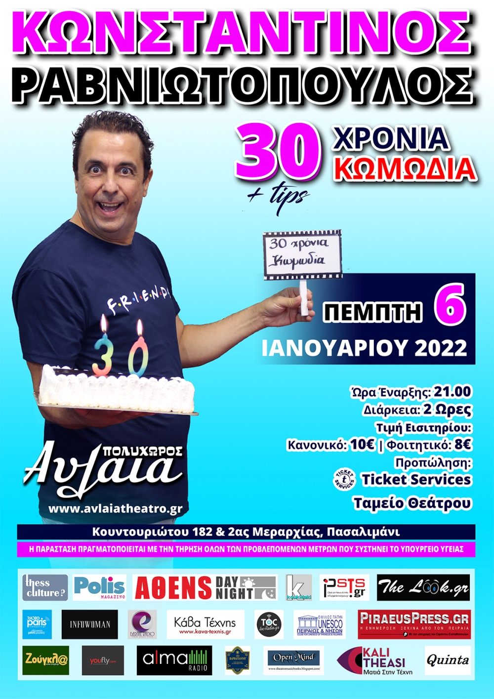 Διεύθυνση εκδήλωσης :https://www.ticketservices.gr/event/30-xronia-komodia-tips-polyxoros-avlaia/